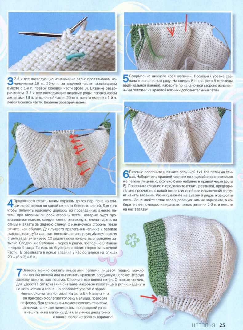 Вязаные чепчики для новорожденных спицами от 0 до 3 месяцев
