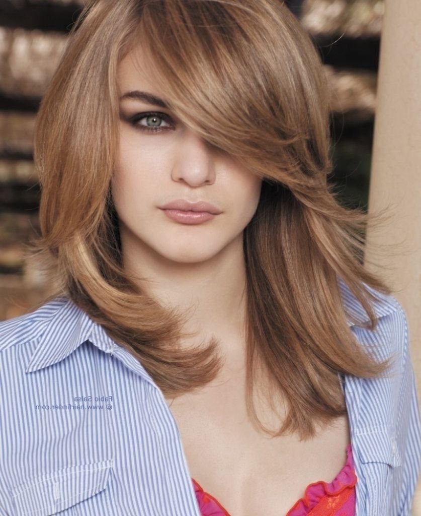 Стрижки женские на длинные волосы с челкой для круглого лица