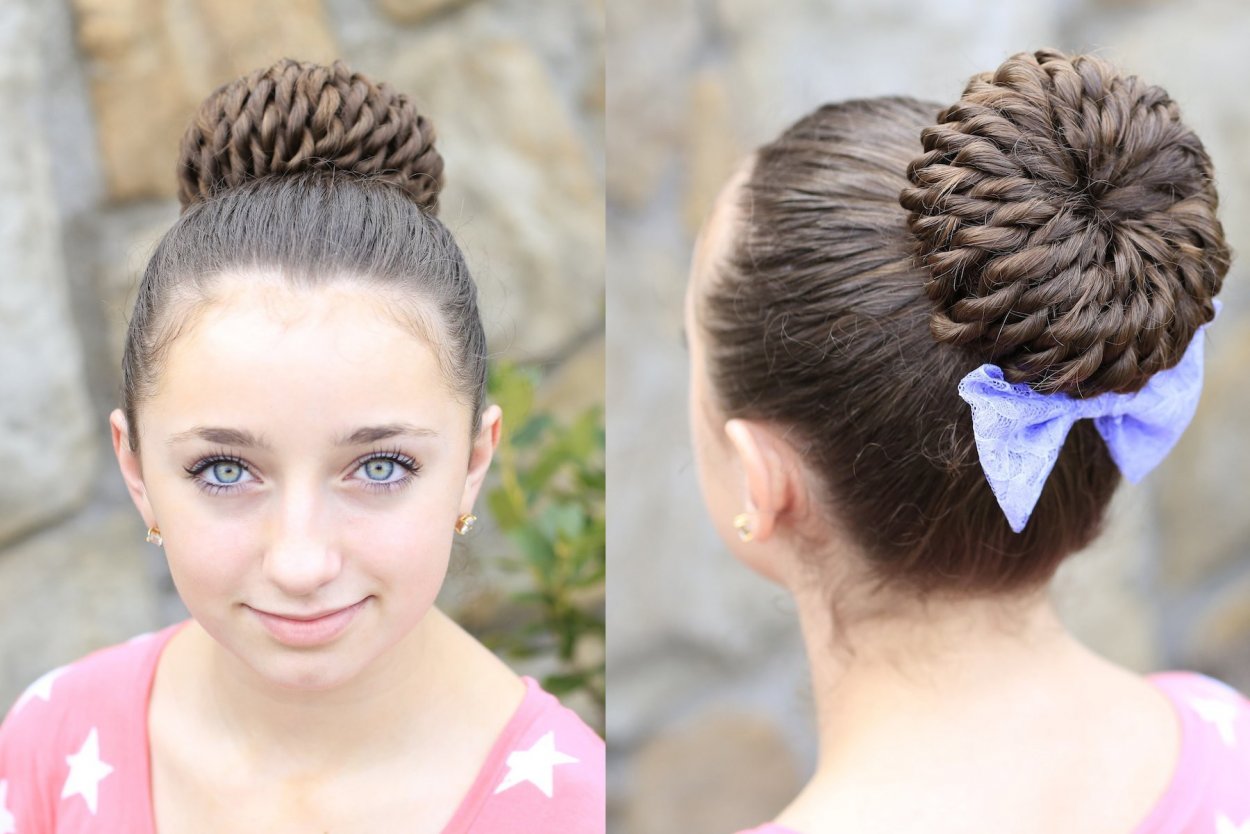 Прическа шишка для девочки