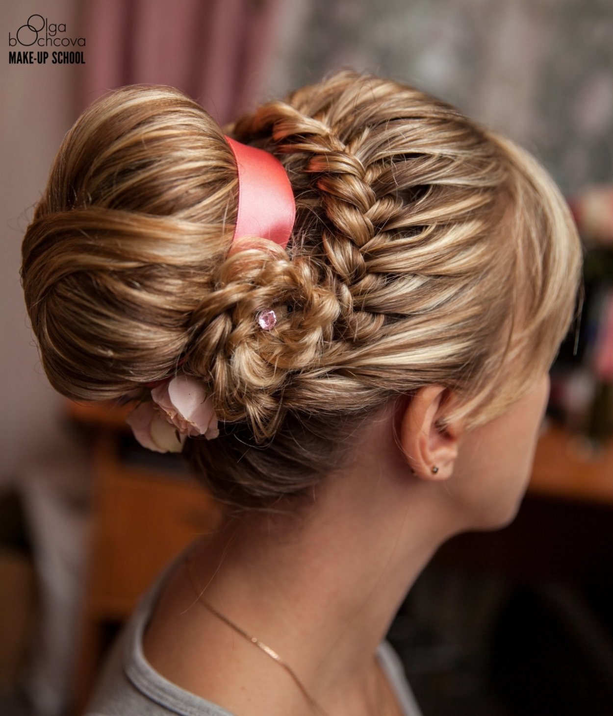 Прическа шишка с косой