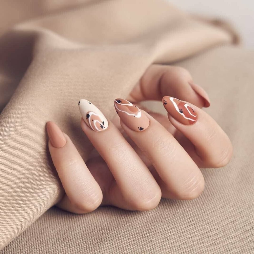 Маникюр розовый с коричневым на овальные ногти