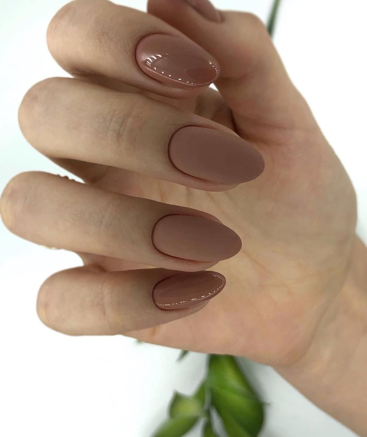 Нюдовый матовый маникюр миндаль