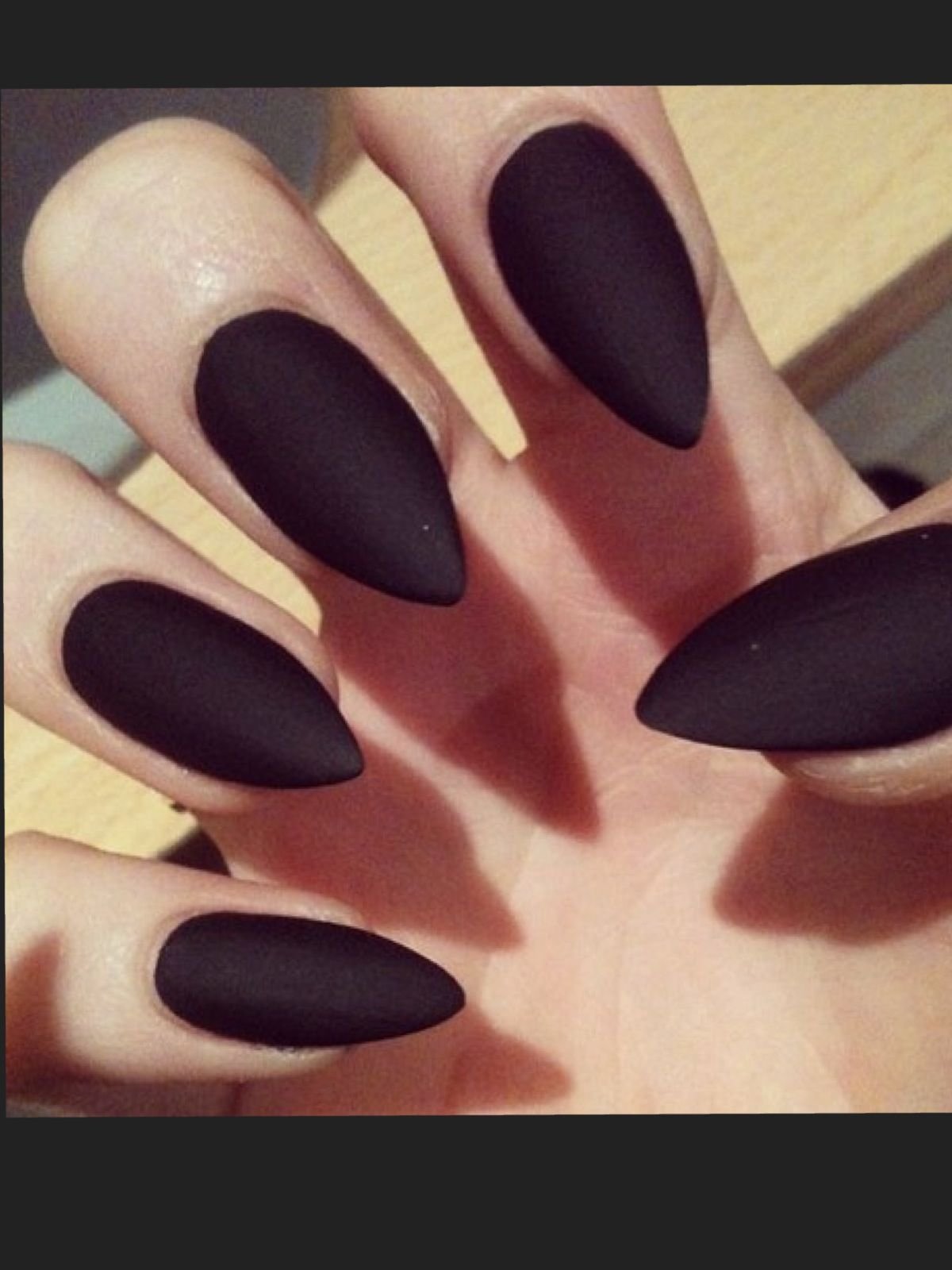 Нарощенные ногти черные матовые острые
