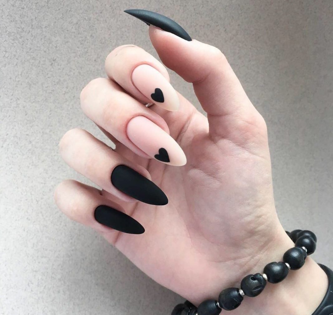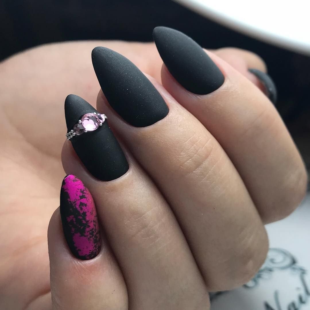 Маникюр 2021 черный матовый миндаль