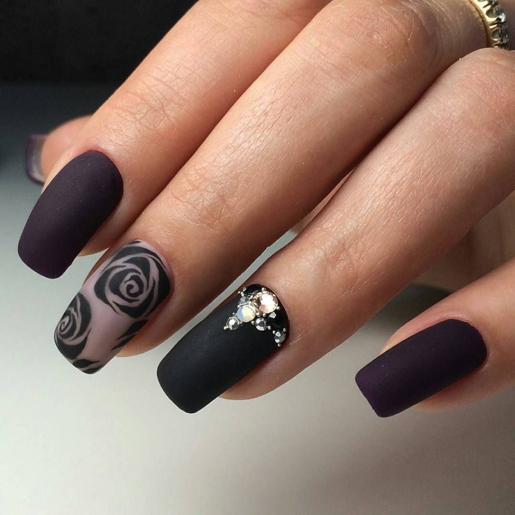 Маникюр черный матовый необычный