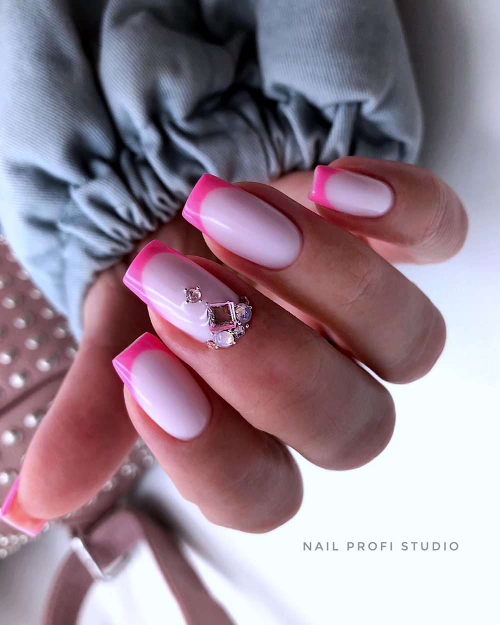 Ярко розовый френч