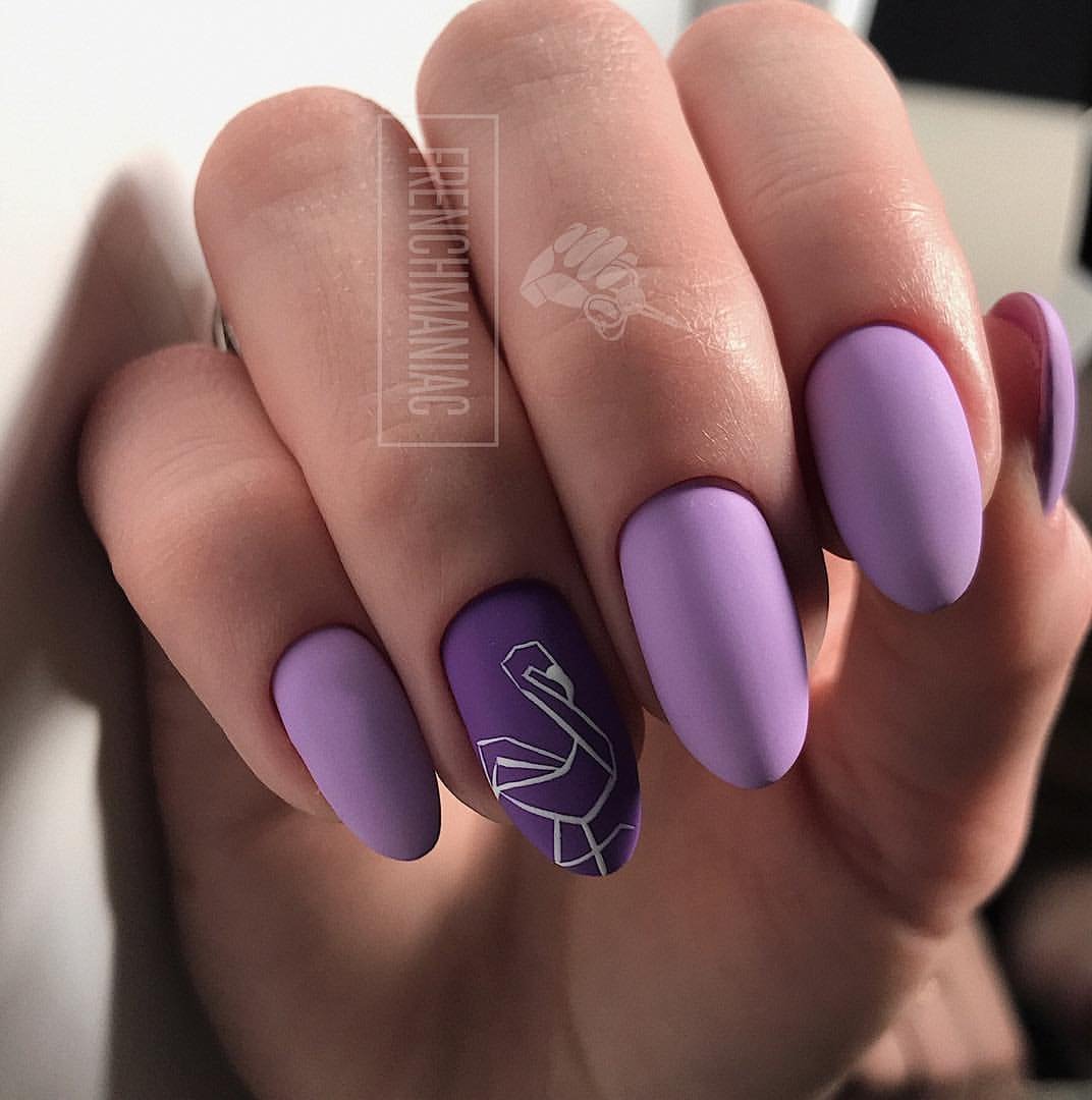 Сиреневые ногти матовые с узором