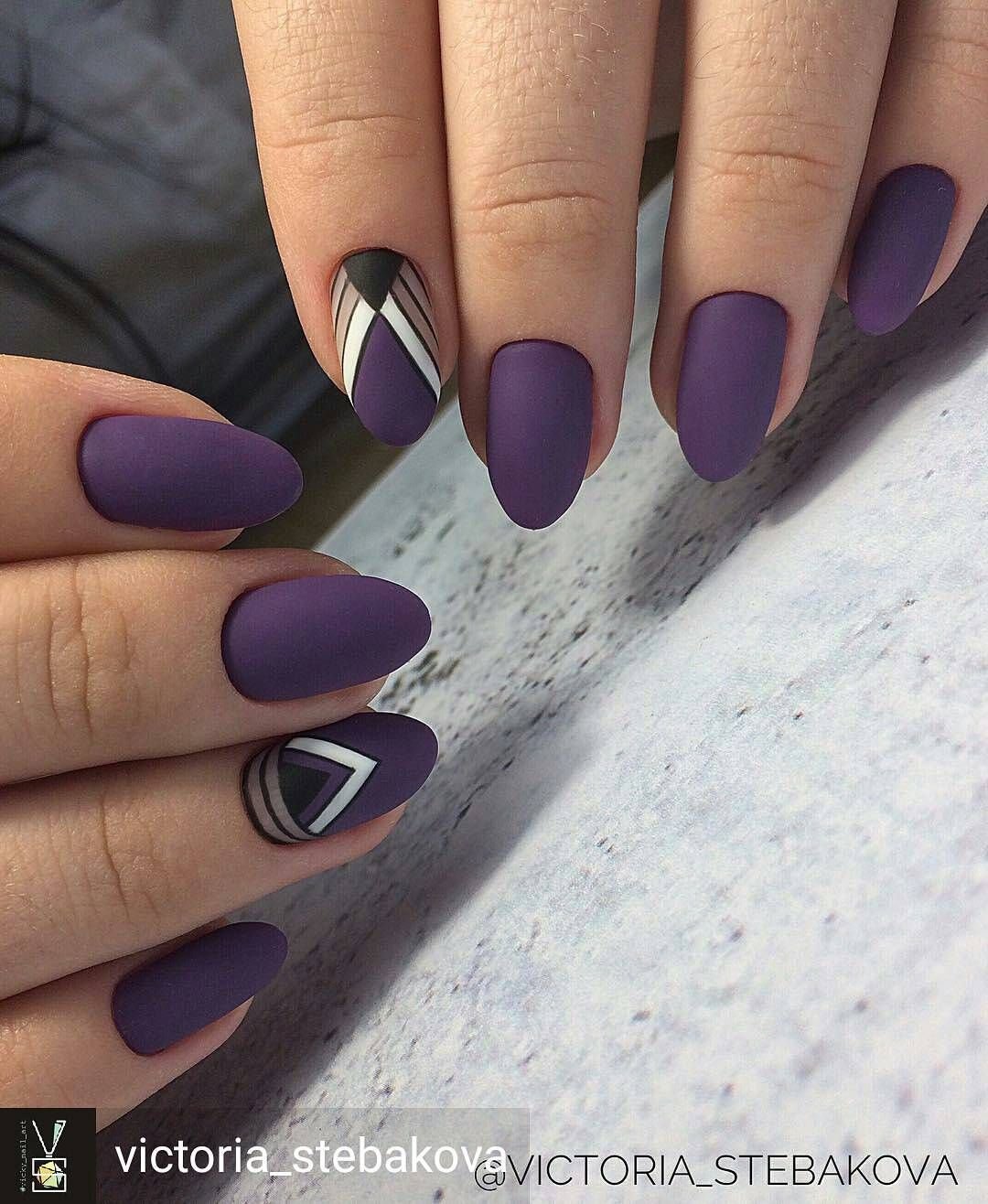 Фиолетовые ногти миндаль