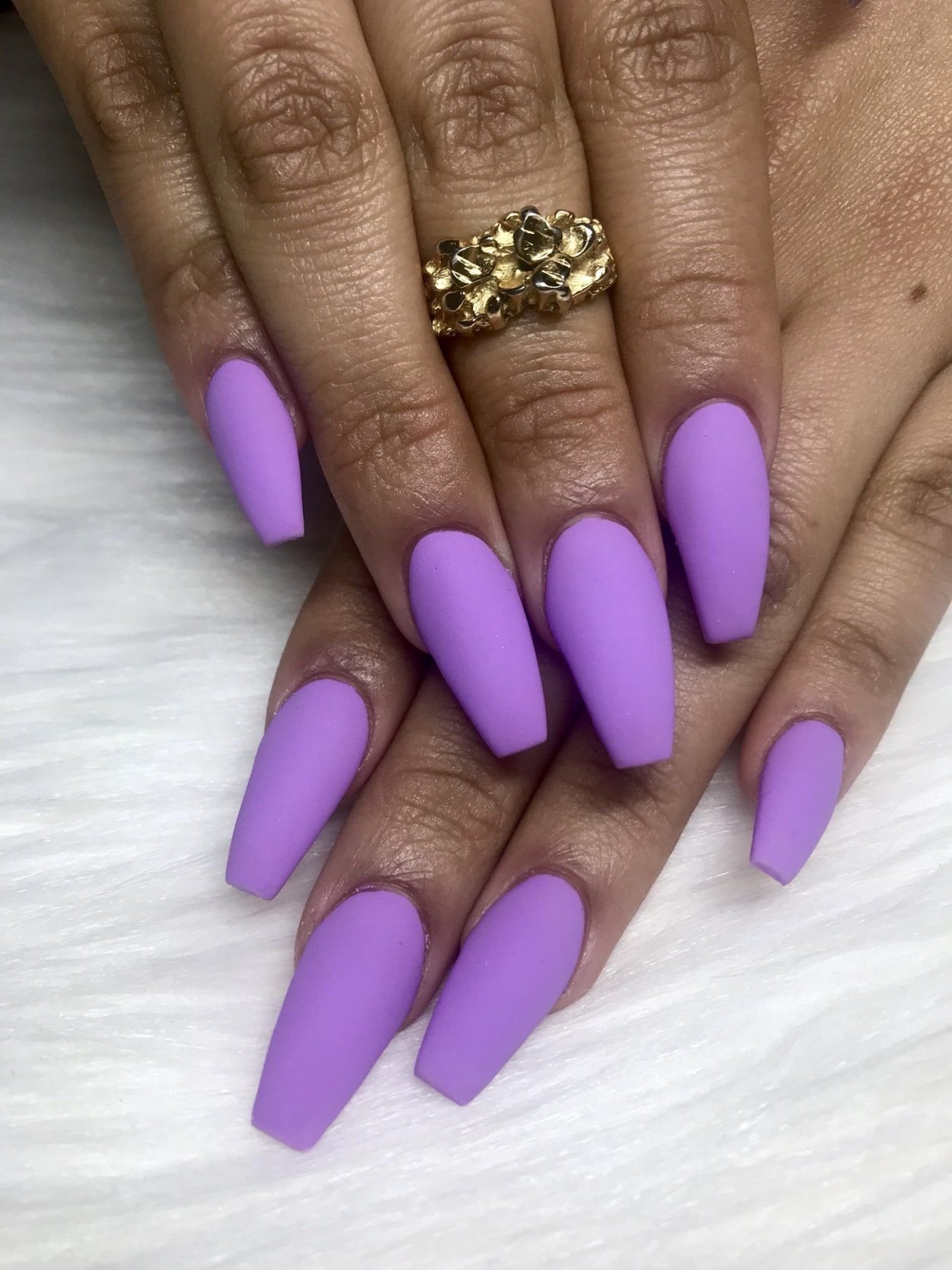 Фиолетовый матовый маникюр длинные