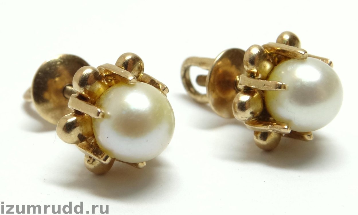 Золотые серьги Ереванский ювелирный завод 583 пробы с жемчугом