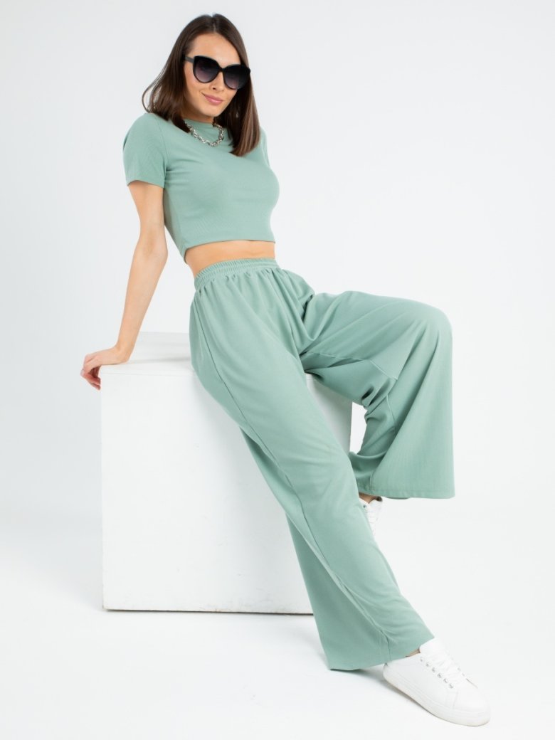 Трикотажный костюм с широкими брюками палаццо