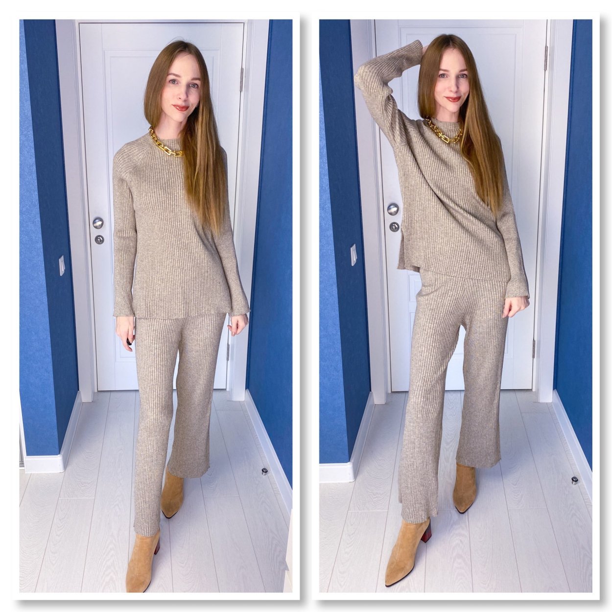 Трикотажный костюм с широкими брюками