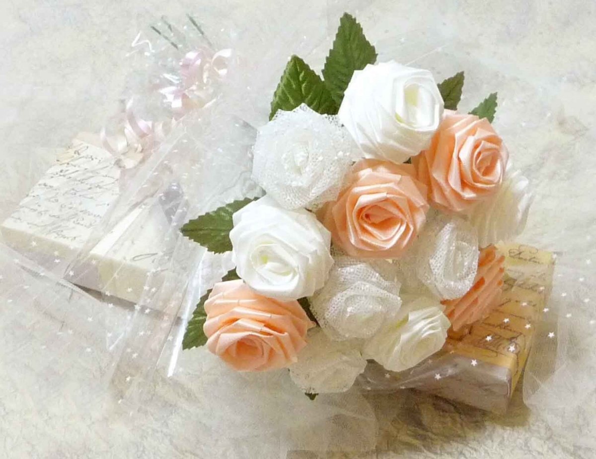 Подарочные букеты роз из атласных лент