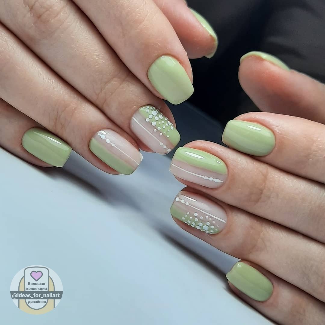 Маникюр фисташкового цвета с белым