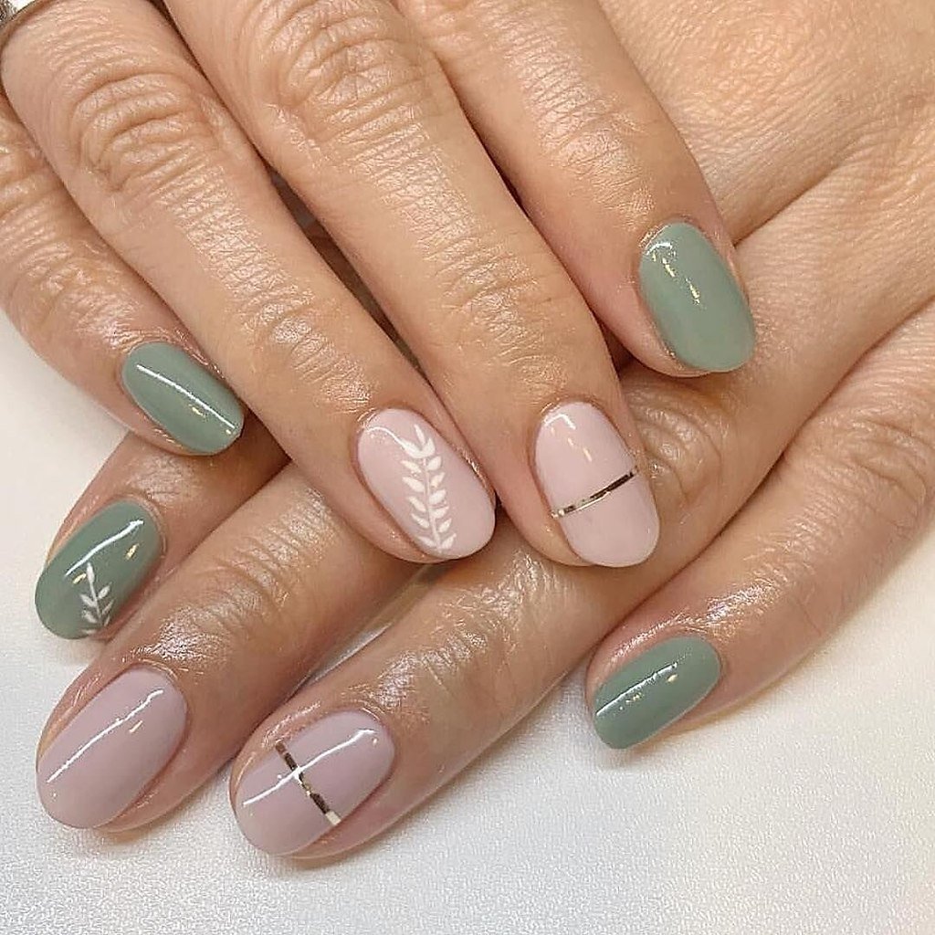 Ногти бежевые с зеленым