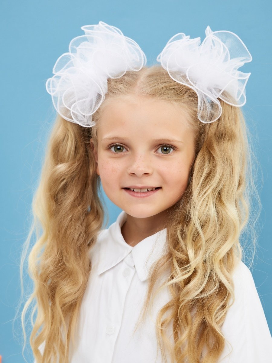 Прическа на 1 сентября для девочки на длинные волосы с бантами 1 класс